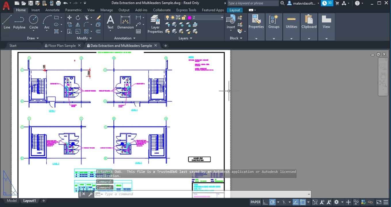 • Trucco Bonus: crea un livello chiamato DEFPOINTS – Qualsiasi cosa su questo livello verrà visualizzata nello spazio modello e carta, ma non verrà tracciata. Perfetto per l’aggiunta di note.