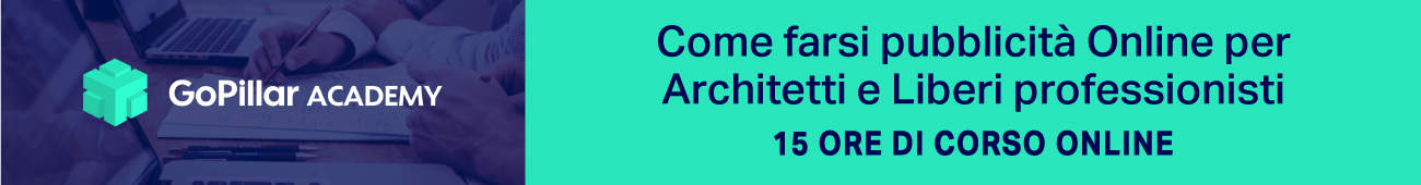 Sei pronto a dare una svolta alla tua presenza online da professionista dell’architettura e mostrare le tue competenze professionali? Segui il corso completo di come farsi pubblicità online per architetti e liberi professionisti di GoPillar Academy, oggi al 20% di sconto!