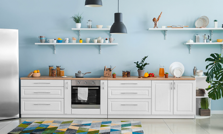 ou can use them for walls, cabinets and even appliances. To make the space seem more cohesive, pick one or two colors and use them throughout the room in different ways. For example, you could paint the walls yellow and use blue for the cabinets and accents. Or you could use red for appliances and yellow for walls and accessories. Whichever color you choose, make sure they complement each other and give your kitchen the bold look you want.