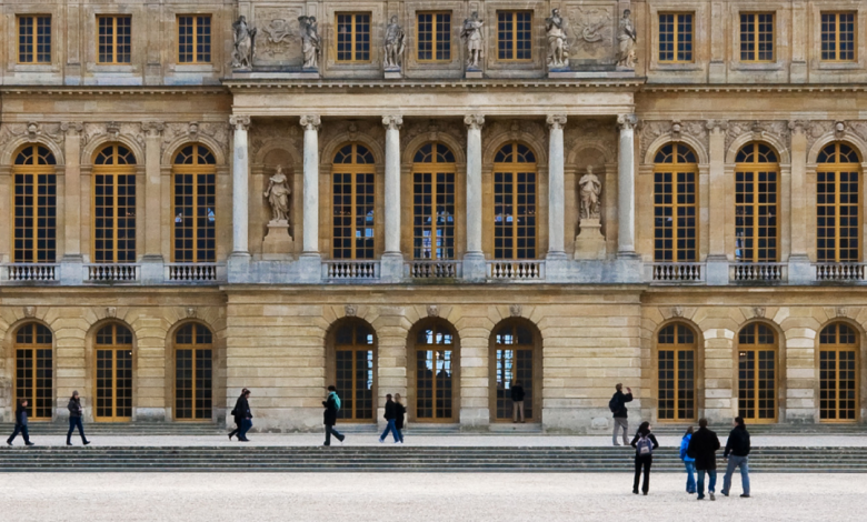 First up we have the luxurious Palace of Versailles. It was the former royal residence of the Bourbon family of France, and is located about twenty kilometers south of Paris. It was commissioned by Louis XIV and was the seat of political power in France until 1682. Within it there are several different styles and outside there is a park that extends over 815 hectares, including 93 gardens.