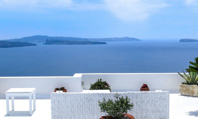 El suelo elegido es una madera de teca muy ligera, resistente a los eventos atmosféricos de cualquier época del año. La madera clara y los tejidos son los materiales también elegidos para el mobiliario, que sigue siendo mínimo, cuadrado y de fácil mantenimiento. Para extender el uso de este espacio a los meses de primavera y otoño, el diseñador también ha decidido instalar un elegante brasero de piedra volcánica de exterior que tiene la doble función de difundir el calor en la zona del salón y actuar como elemento decorativo original.