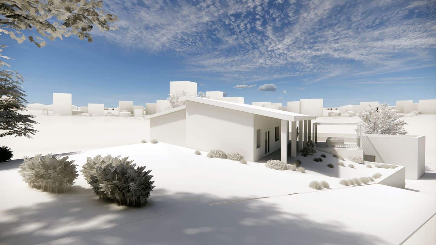 Obviamente, la gran parcela permite crear un entorno exterior que nuestro cliente puede disfrutar al máximo, por lo que el edificio está rodeado de zonas de porche y una pérgola que actúa como una extensión natural del espacio que da a la esquina de la parcela, para ser disfrutado durante la temporada de calor.